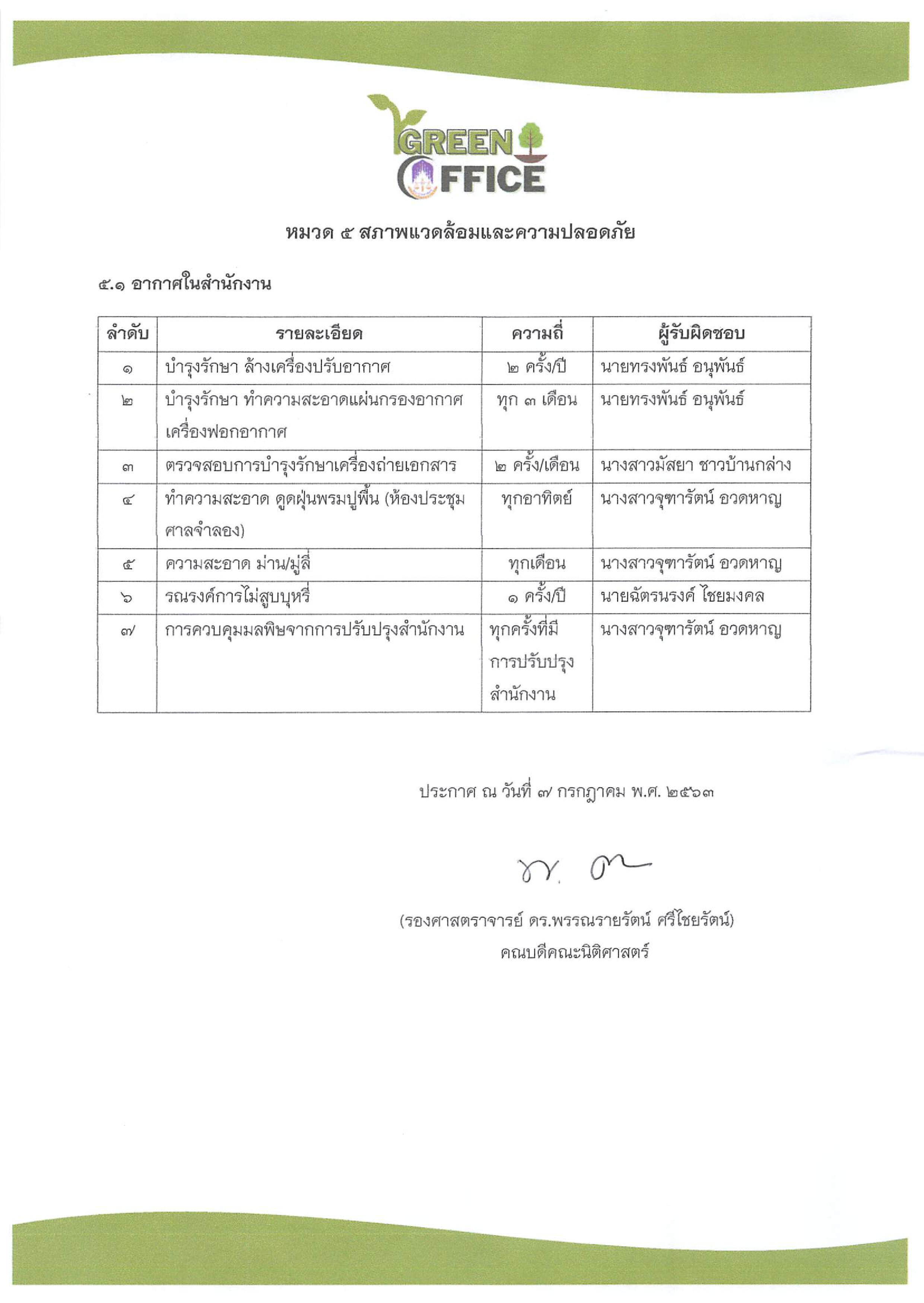 5.4.1 มีการวางแผนจัดการความน่าอยู่ของสำนักงาน